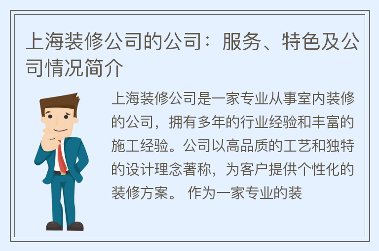 上海装修公司的公司:服务、特色及公司情况简介