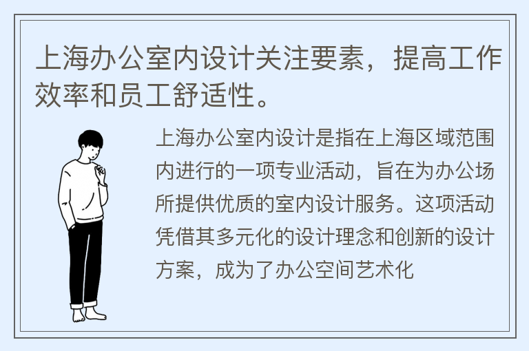 上海办公室内设计关注要素,提高工作效率和员工舒适性。