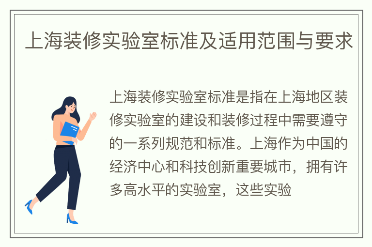 上海装修实验室标准是指在上海地区装修实验室的建设和装修过程中需要遵守的一系列规范和标准。上海作为中国的经济中心和科技创新重要城市,拥有许多高水平的实验室,这些实验......【点击详情】