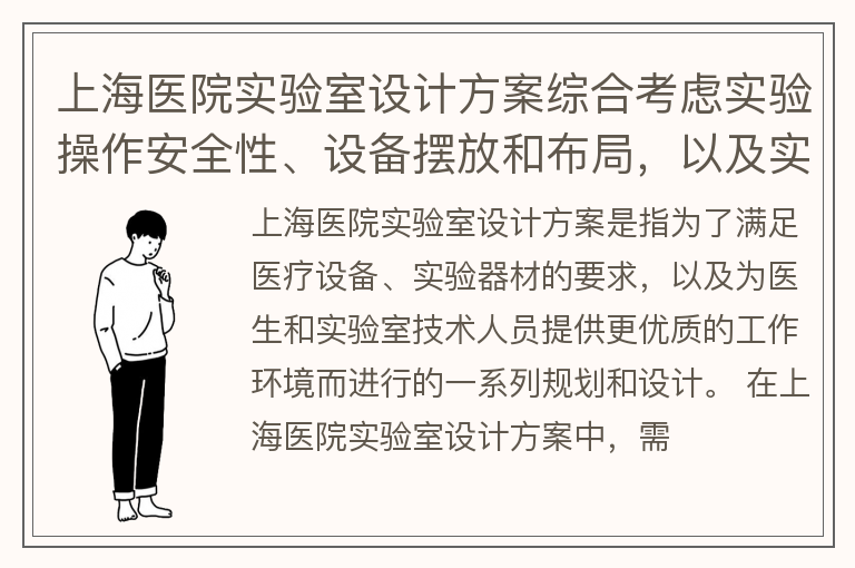 上海医院实验室设计方案综合考虑实验操作安全性、设备摆放和布局,以及实验
