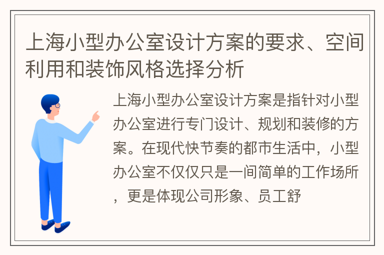 上海小型办公室设计方案的要求、空间利用和装饰风格选择分析