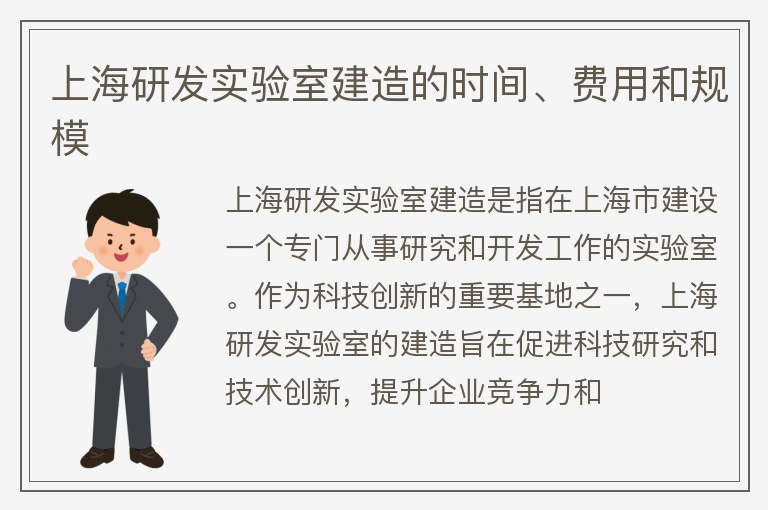 上海研发实验室建造是指在上海市建设一个专门从事研究和开发工作的实验室。作为科技创新的重要基地之一,上海研发实验室的建造旨在促进科技研究和技术创新,提升企业竞争力和......【点击详情】