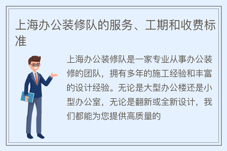 上海办公装修队的服务、工期和收费标准