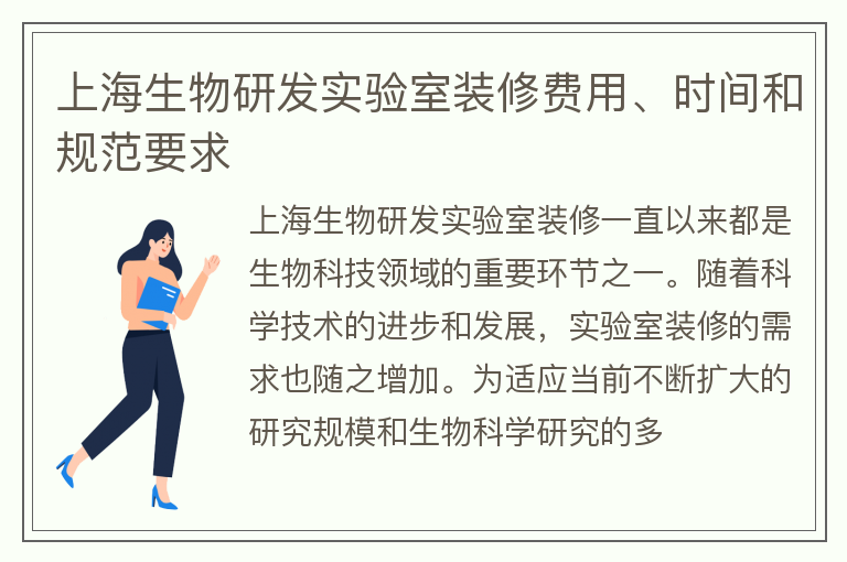 上海生物研发实验室装修费用、时间和规范要求