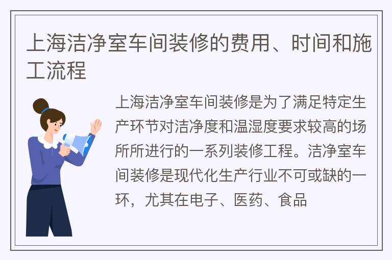 上海洁净室车间装修的费用、时间和施工流程