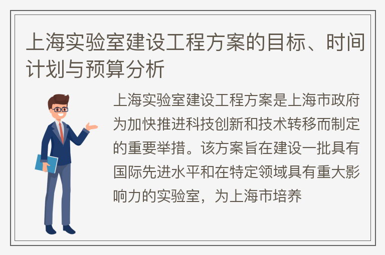 上海实验室建设工程方案的目标、时间计划与预算分析