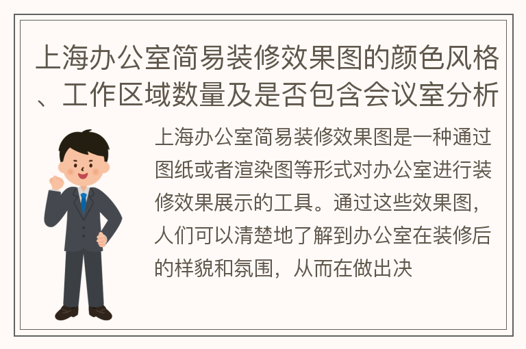 上海办公室简易装修效果图的颜色风格、工作区域数量及是否包含会议室分析