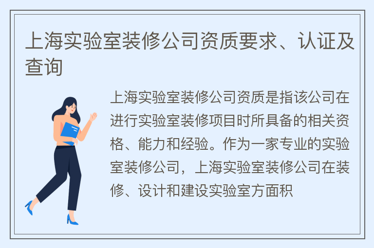 上海实验室装修公司资质是指该公司在进行实验室装修项目时所具备的相关资格、能力和经验。作为一家专业的实验室装修公司,上海实验室装修公司在装修、设计和建设实验室方面积......【点击详情】