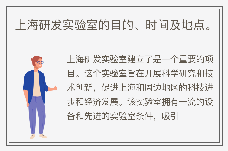 上海实验室建设工程方案是上海市政府为加快推进科技创新和技术转移而制定的重要举措。该方案旨在建设一批具有国际先进水平和在特定领域具有重大影响力的实验室,为上海市培养......【点击详情】