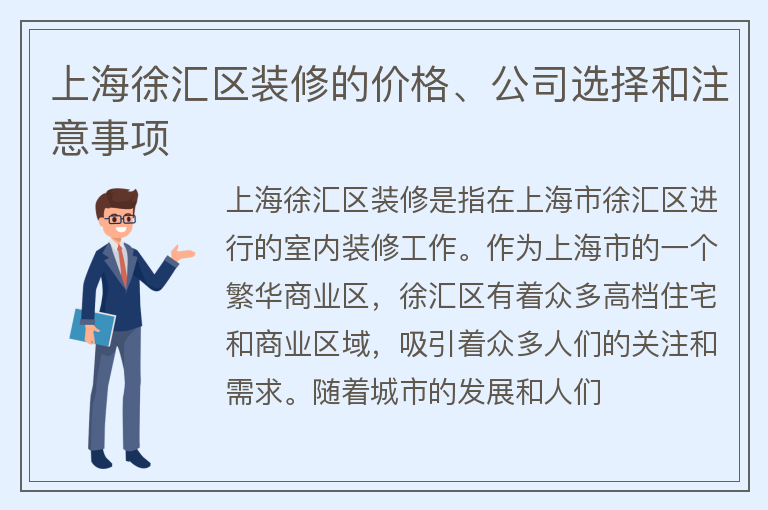 上海徐汇区装修的价格、公司选择和注意事项