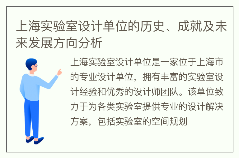上海实验室设计单位的历史、成就及未来发展方向分析