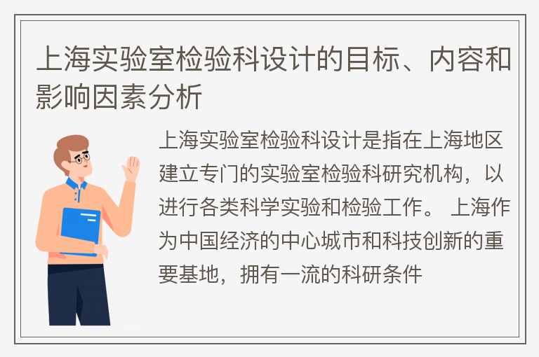 上海实验室检验科设计的目标、内容和影响因素分析
