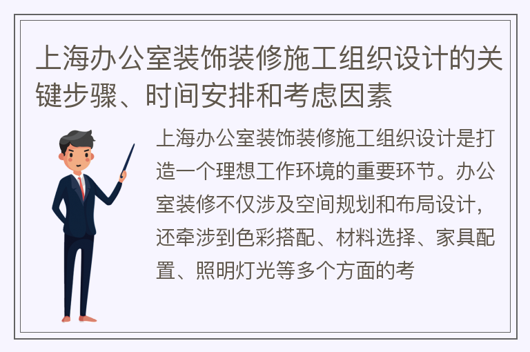 上海办公室装饰装修施工组织设计的关键步骤、时间安排和考虑因素