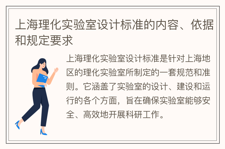 上海理化实验室设计标准是针对上海地区的理化实验室所制定的一套规范和准则。它涵盖了实验室的设计、建设和运行的各个方面,旨在确保实验室能够安全、高效地开展科研工作。......【点击详情】