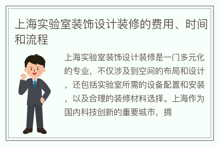 上海实验室装饰设计装修是一门多元化的专业,不仅涉及到空间的布局和设计,还包括实验室所需的设备配置和安装,以及合理的装修材料选择。上海作为国内科技创新的重要城市,拥......【点击详情】