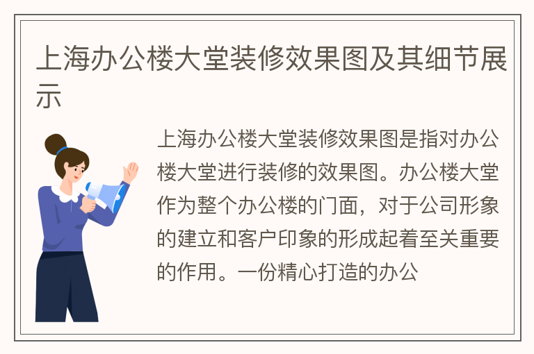 上海办公楼大堂装修效果图是指对办公楼大堂进行装修的效果图。办公楼大堂作为整个办公楼的门面,对于公司形象的建立和客户印象的形成起着至关重要的作用。一份精心打造的办公......【点击详情】