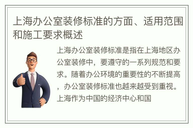上海办公室装修标准的方面、适用范围和施工要求概述