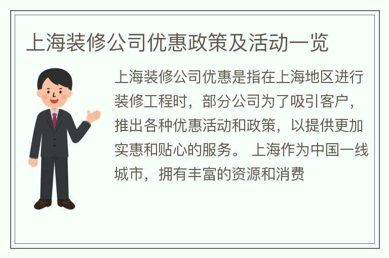 上海装修公司优惠是指在上海地区进行装修工程时,部分公司为了吸引客户,推出各种优惠活动和政策,以提供更加实惠和贴心的服务。 上海作为中国一线城市,拥有丰富的资源和消费......【点击详情】