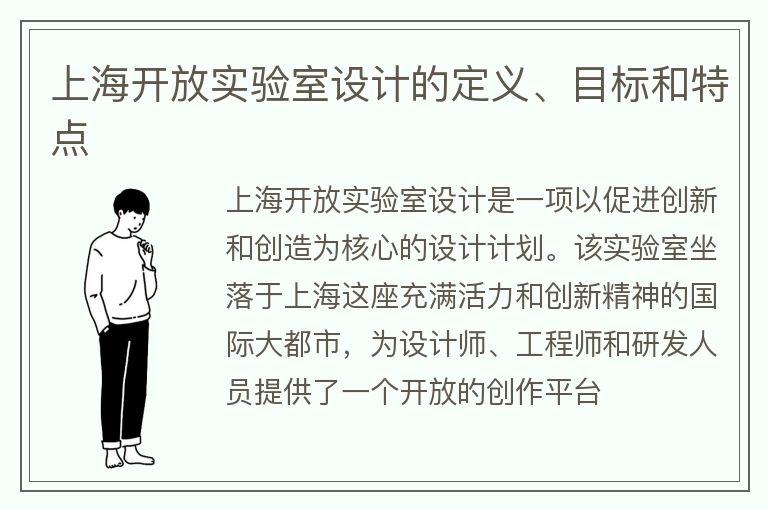上海开放实验室设计是一项以促进创新和创造为核心的设计计划。该实验室坐落于上海这座充满活力和创新精神的国际大都市,为设计师、工程师和研发人员提供了一个开放的创作平台......【点击详情】