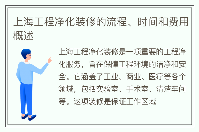 上海工程净化装修的流程、时间和费用概述