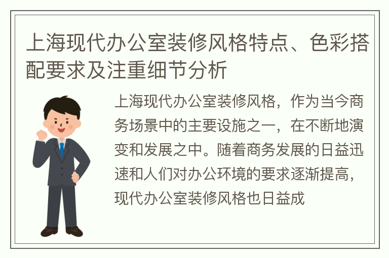 上海现代办公室装修风格特点、色彩搭配要求及注重细节分析