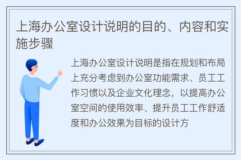 上海办公室设计说明是指在规划和布局上充分考虑到办公室功能需求、员工工作习惯以及企业文化理念,以提高办公室空间的使用效率、提升员工工作舒适度和办公效果为目标的设计方......【点击详情】