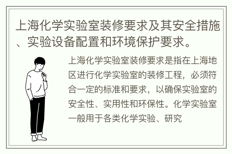 上海化学实验室装修要求及其安全措施、实验设备配置和环境保护要求。