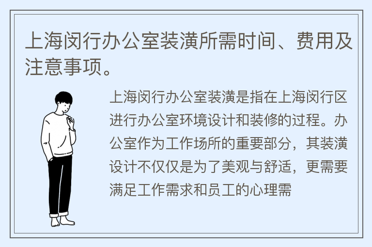 上海闵行办公室装潢所需时间、费用及注意事项。
