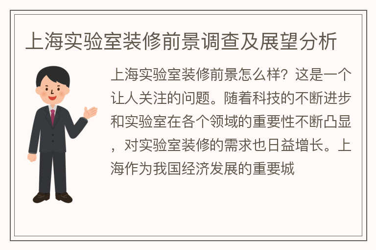 上海实验室装修前景怎么样?这是一个让人关注的问题。随着科技的不断进步和实验室在各个领域的重要性不断凸显,对实验室装修的需求也日益增长。上海作为我国经济发展的重要城......【点击详情】