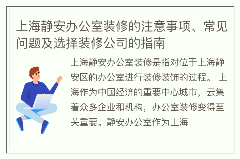 上海静安办公室装修的注意事项、常见问题及选择装修公司的指南