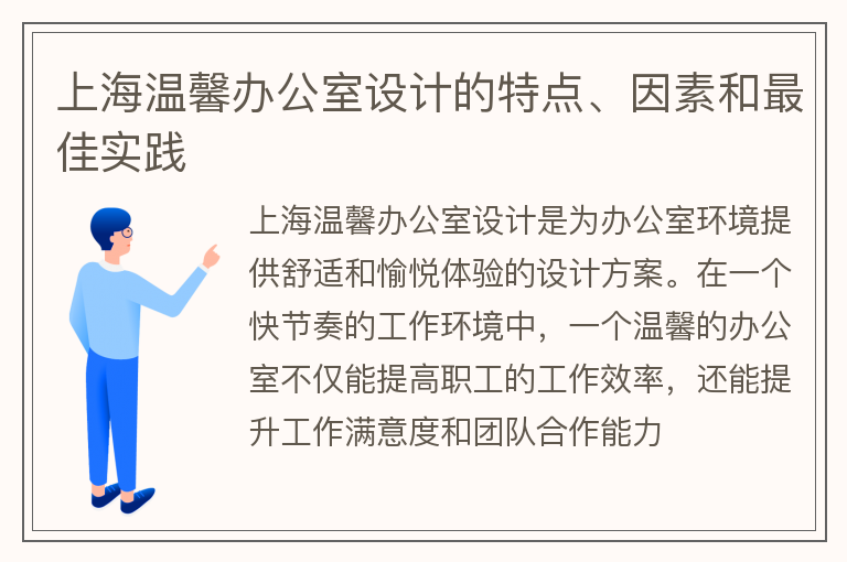 上海温馨办公室设计的特点、因素和最佳实践