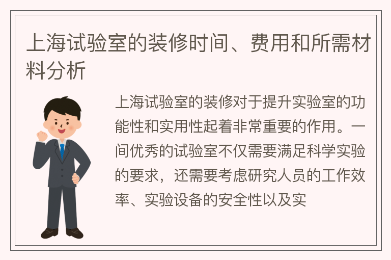 上海试验室的装修时间、费用和所需材料分析