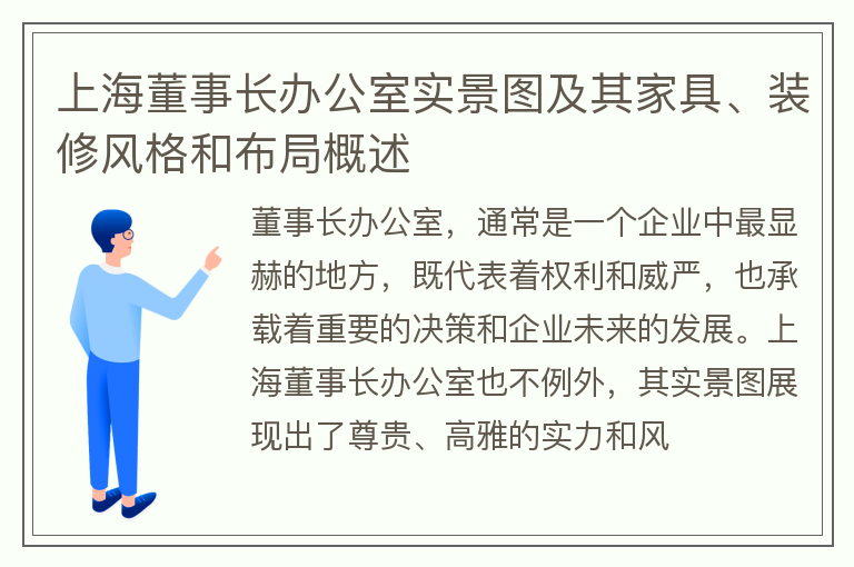 上海董事长办公室实景图及其家具、装修风格和布局概述