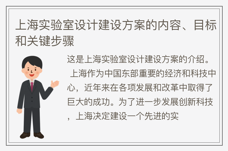 上海实验室设计建设方案的内容、目标和关键步骤