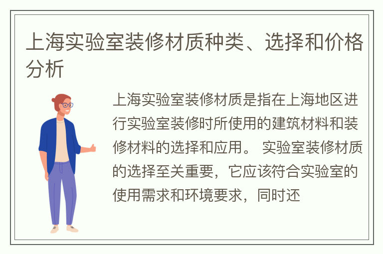 上海实验室装修材质是指在上海地区进行实验室装修时所使用的建筑材料和装修材料的选择和应用。 实验室装修材质的选择至关重要,它应该符合实验室的使用需求和环境要求,同时还......【点击详情】