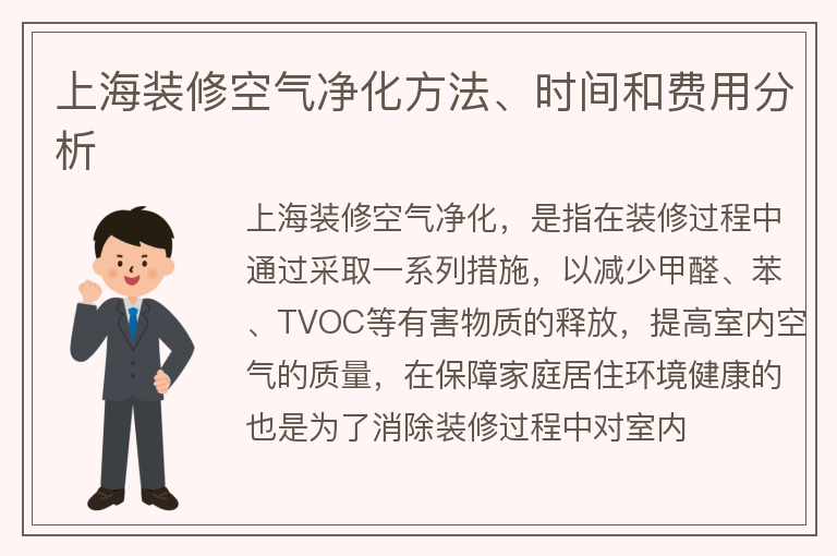上海装修空气净化,是指在装修过程中通过采取一系列措施,以减少甲醛、苯、TVOC等有害物质的释放,提高室内空气的质量,在保障家庭居住环境健康的也是为了消除装修过程中对室内......【点击详情】