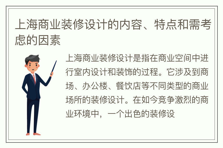 上海商业装修设计的内容、特点和需考虑的因素