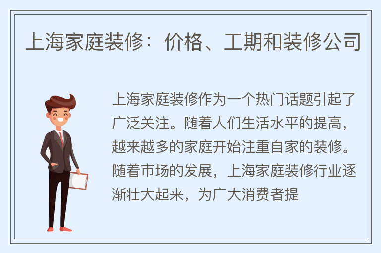 上海家庭装修:价格、工期和装修公司