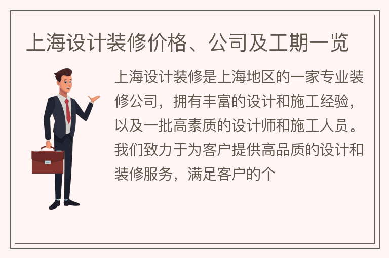 上海设计装修价格、公司及工期一览