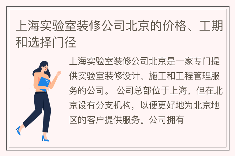 上海实验室装修公司北京的价格、工期和选择门径