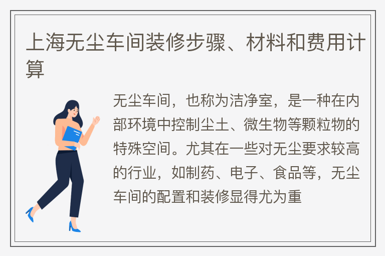 上海无尘车间装修步骤、材料和费用计算