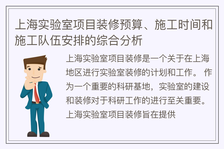 上海实验室项目装修预算、施工时间和施工队伍安排的综合分析