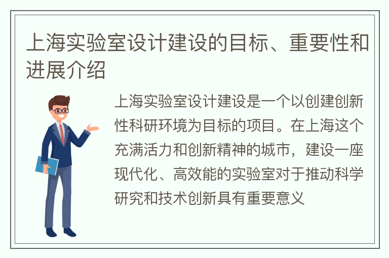 上海实验室设计建设是一个以创建创新性科研环境为目标的项目。在上海这个充满活力和创新精神的城市,建设一座现代化、高效能的实验室对于推动科学研究和技术创新具有重要意义......【点击详情】
