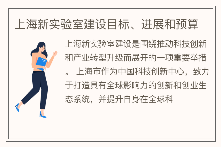 上海新实验室建设是围绕推动科技创新和产业转型升级而展开的一项重要举措。 上海市作为中国科技创新中心,致力于打造具有全球影响力的创新和创业生态系统,并提升自身在全球科......【点击详情】