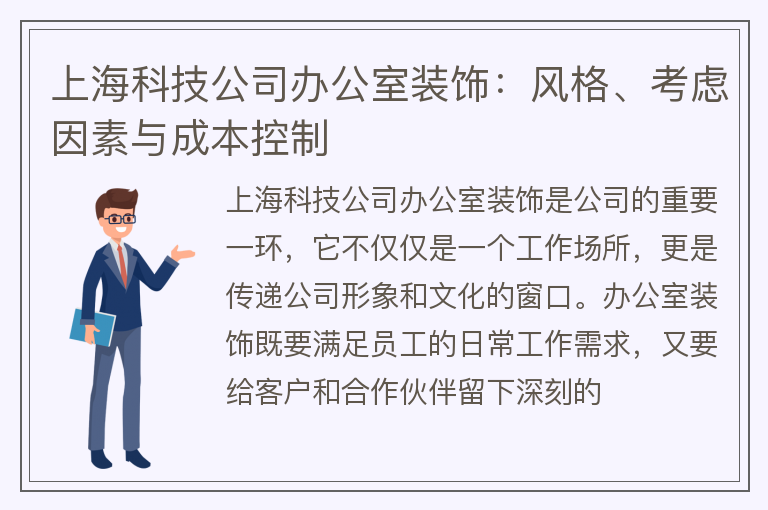 上海科技公司办公室装饰:风格、考虑因素与成本控制