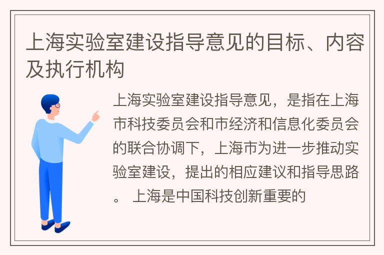 上海实验室建设指导意见的目标、内容及执行机构