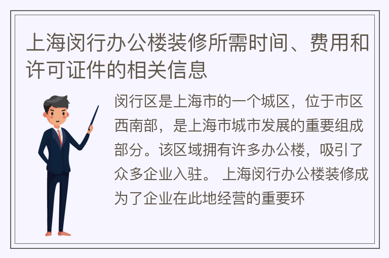 上海闵行办公楼装修所需时间、费用和许可证件的相关信息