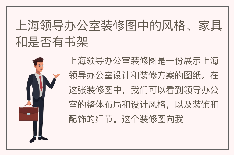 上海领导办公室装修图中的风格、家具和是否有书架