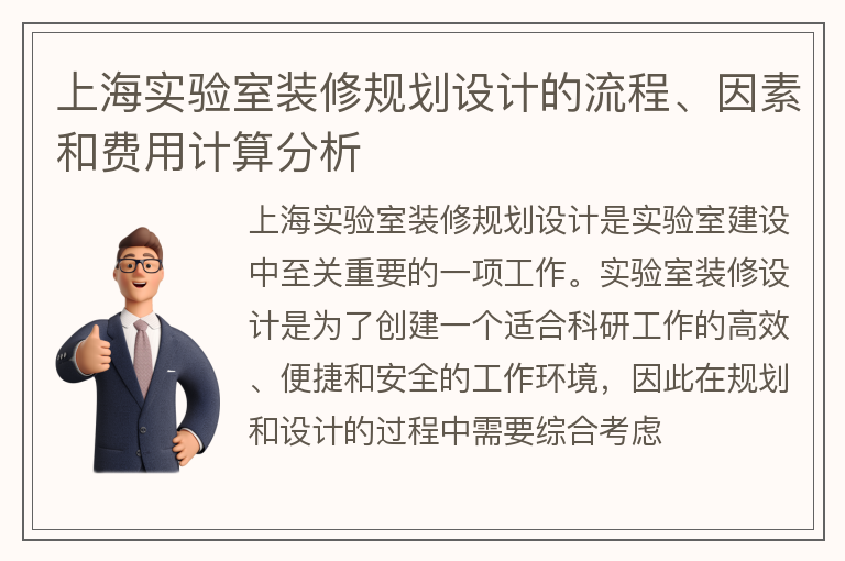 上海实验室装修规划设计的流程、因素和费用计算分析