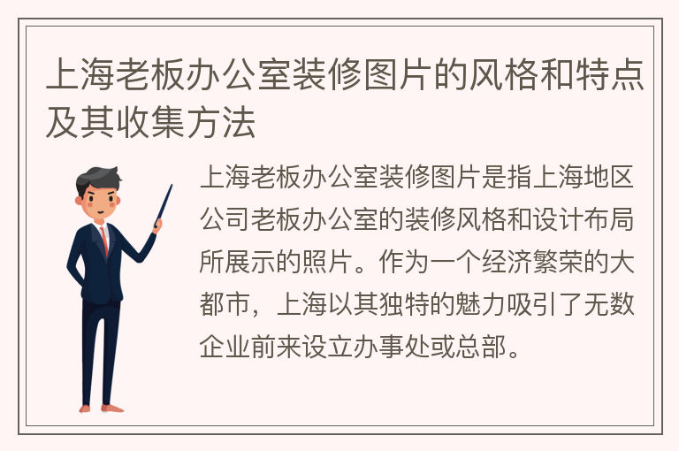 上海老板办公室装修图片是指上海地区公司老板办公室的装修风格和设计布局所展示的照片。作为一个经济繁荣的大都市,上海以其独特的魅力吸引了无数企业前来设立办事处或总部。......【点击详情】